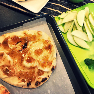 Naan topped with fig jam, apples and brie is seriously one of my favorite eats of all time. I love the complex flavors and delightful mix of textures resulting from a few simple ingredients. The crisp and tart Granny Smith apple is the perfect complement to the creamy nutty brie. And the fig jam acts as a sticky-sweet anchor on the crusty naan bread. I mean really, what's not to love?